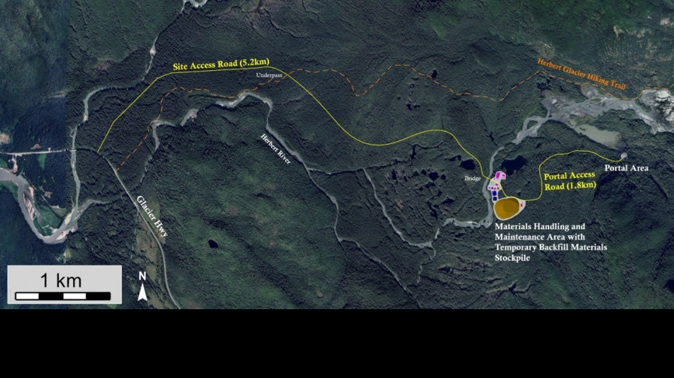 Der Zugang zum Projektstandort erfolgt über eine neue, 5,2 km lange Zufahrtsstraße, die an den Glacier Highway anschließt, eine asphaltierte öffentliche Straße, die die Stadt Juneau verbindet. Es sind keine Unterkünfte für das Personal geplant; stattdessen wird die Belegschaft für jede Schicht mit einem Mannschaftsbus aus Juneau transportiert, da der Standort nur etwa 35 Autominuten von den Vororten von Juneau entfernt liegt. Die Stadt Juneau dient als regionales Bergbauzentrum, das derzeit zwei große Untertagebergwerke versorgt und über qualifizierte lokale Bergbauarbeiter sowie Einrichtungen zur Wartung der Ausrüstung verfügt.