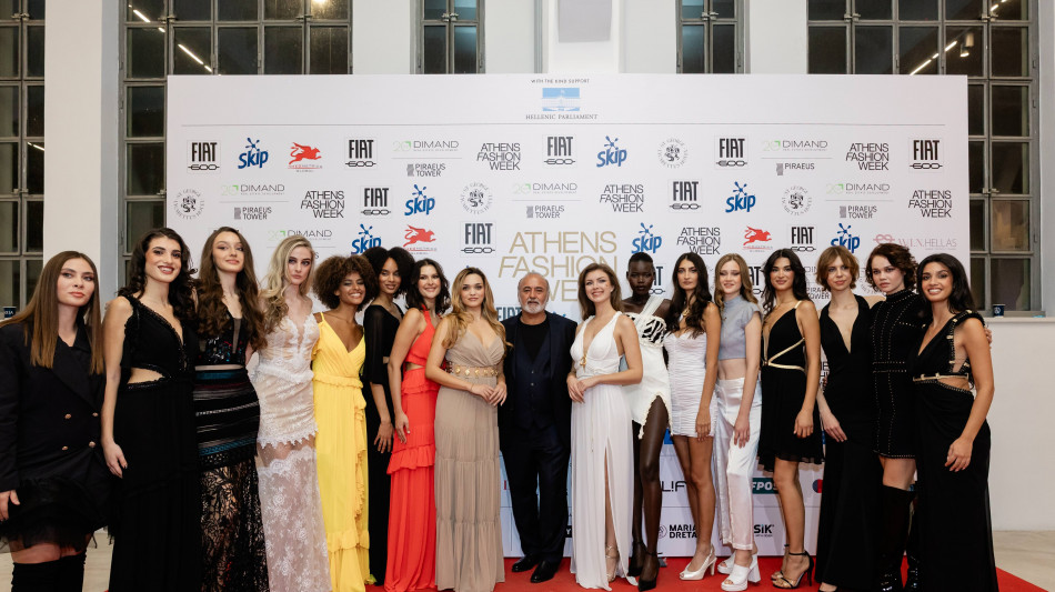 Sam Stathis with Olympic Angels and TheaMou by MeaDea models at Athens Fashion Week
